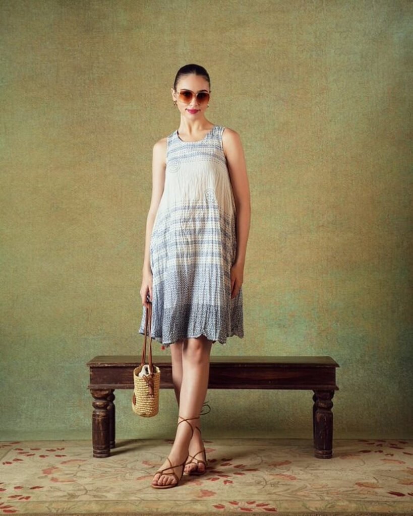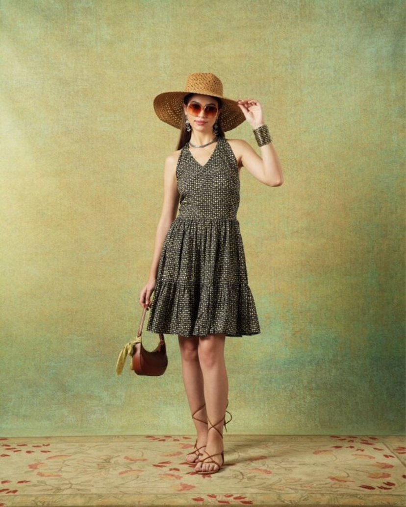 - Style: Halter Neck Crinkled Jaipur Block Print Dress