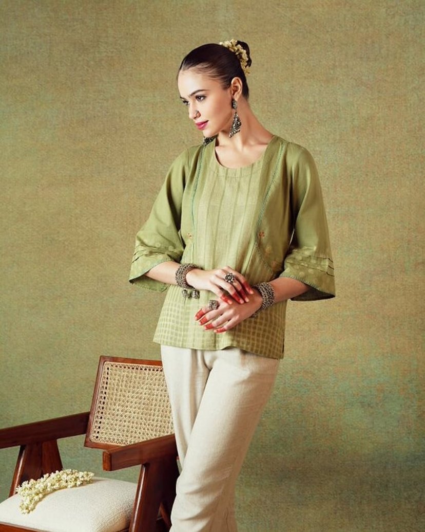 Elevate your office wardrobe with our Flared Top featuring Block Print Stripes in a refreshing green hue. This relaxed, round-neck top is designed for comfort and style, making it perfect for both professional and casual settings. The slightly flared 3/4 sleeves add a touch of elegance, while the layered block printing offers a unique and artistic flair. Crafted from a premium cotton flax blend, this tunic ensures breathability and ease of movement throughout your day. Whether you’re heading to a meeting or enjoying a casual day out, this versatile piece seamlessly transitions from office to living. Embrace the perfect blend of comfort and sophistication with this must-have addition to your wardrobe.