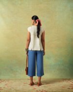 Elevate your everyday wardrobe with our Hand Embroidered Flared Top in a sophisticated creamy white. This cap-sleeve, hip-length top features a rounded yoke and a flattering flared silhouette, perfect for adding a touch of elegance to your daily ensemble. The intricate hand embroidery showcases a delicate interplay of small black and cream checks, complemented by thin stripes, creating a timeless and versatile design.