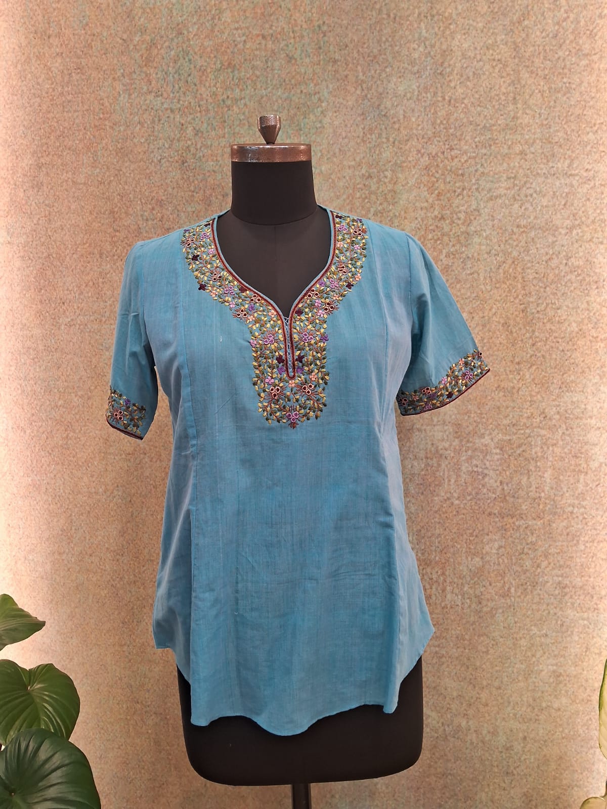 Hand Embroidery Tunic Princess Cut Blue