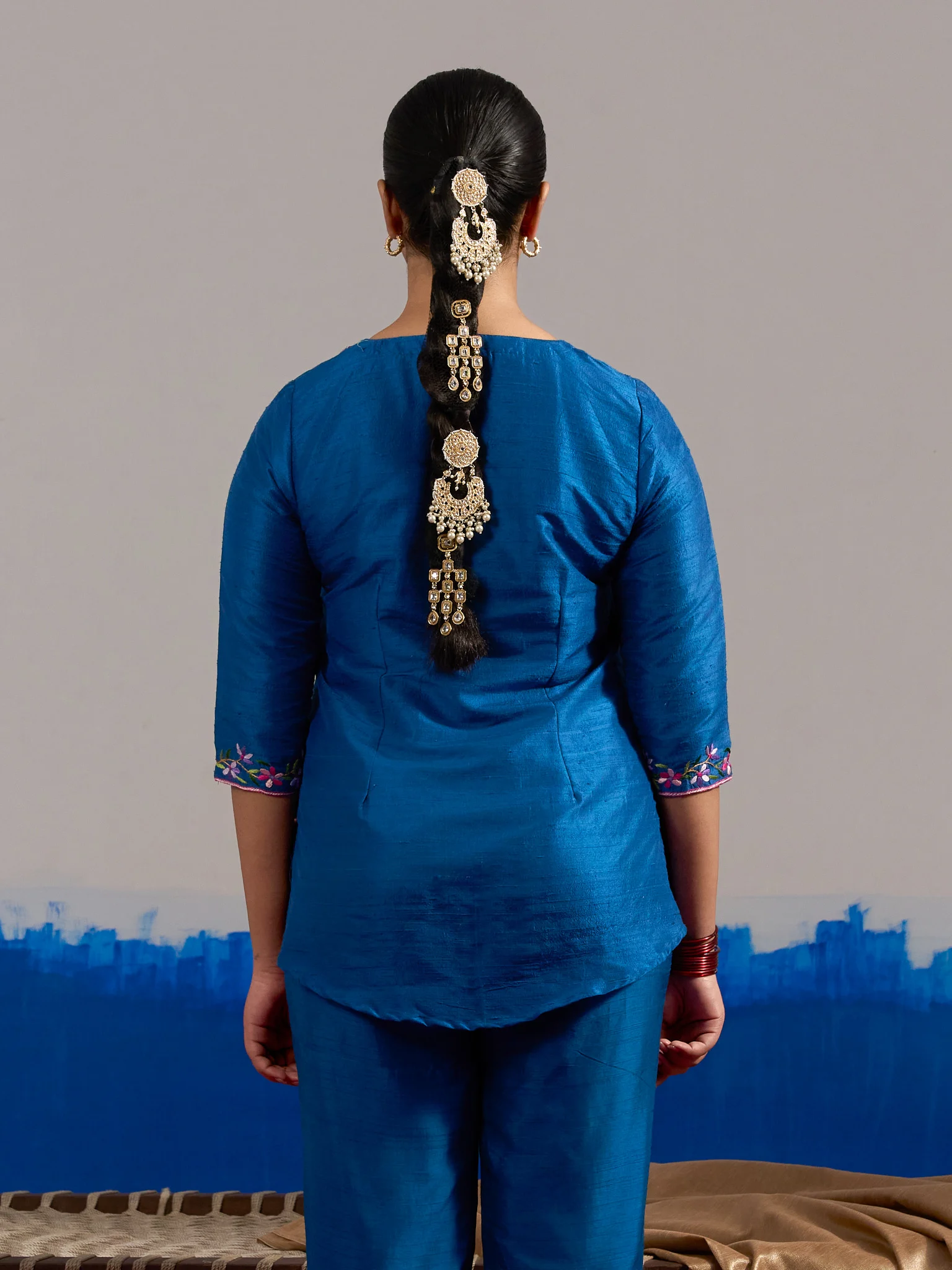 Coord Set Royal Blue Dupion Silk Hand Embroidered